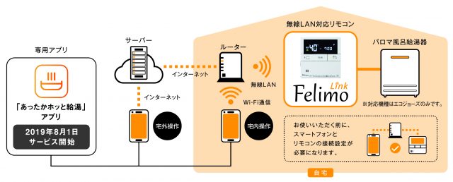 パロマ(名古屋市)は、スマートフォンを使って給湯器を操作できる無線LAN対応リモコン「FelimoLink(フェリモリンク)」を8月から順次発売する。