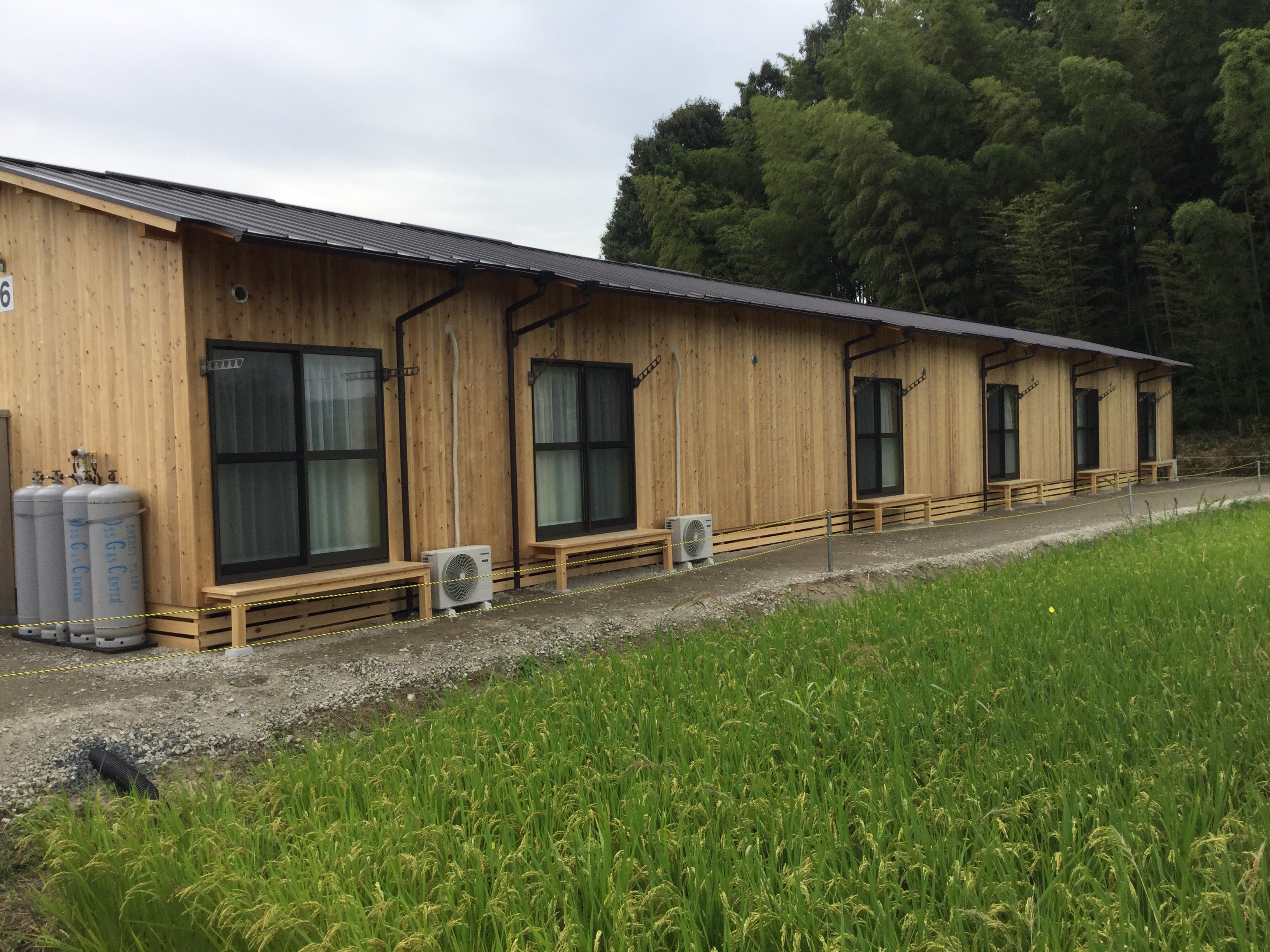 そのほか電気・水道・板金・足場・内装・外構などの業者は幹事工務店らによる地元の直接雇用と自社社員でまかない、9月24日に全57戸を無事竣工、29日に被災者に引き渡しを完了した。建物総工費は、2年後の解体・復旧費を含めて総額で約5億5369万8806円(税込み)となった。