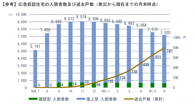 今回の講演では、岡山県内で供給された建設型仮設住宅312戸のうち、全木協が木造在来軸組工法で供給した57戸の取り組みについて報告した。岡山県内の建設型仮設住宅はこのほか、プレハブ住宅158戸、福島県から移築した木造46戸、トレーラーハウス51戸ある。今年6月末時点の入居数は、建設型が259戸(607人)、民間賃貸や公営住宅を活用した借上型が7203戸(6596人)となっている。