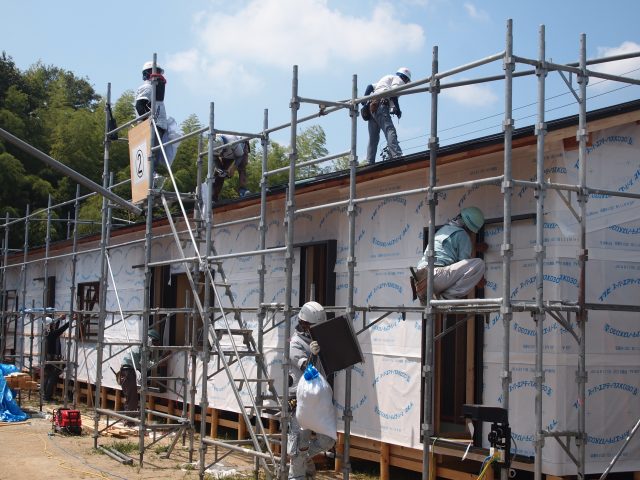 建築工程の大半を占める木工事の人手は、全建総連の「労働者供給事業」を活用した。全建総連が被災県を中心に全国の組合員に大工応援を呼びかけたところ、岡山県では総勢126人(県内68人・県外58人)の大工が名乗りを上げ、8月23日から9月12日頃まで約20日間で約1400~1500人工(1戸あたり平均約1.25人工)を担った。