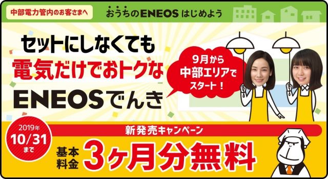 同社は9月1日〜10月31日の期間、中部電力エリアで「基本料金が3ヵ月分無料」となる「新発売キャンペーン」を実施する。