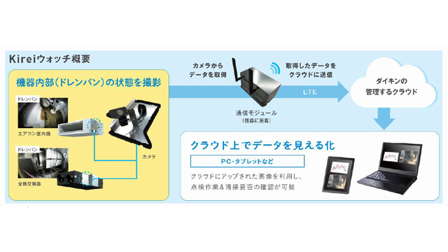 ダイキン工業(大阪市)は、業務用空調機内部の汚れを自動検知する、IoTを活用したサービス「Kireiウォッチ(キレイウォッチ)」の販売を開始する。10月1日発売。