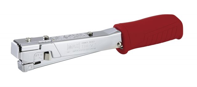 マックス(東京都中央区)は9月17日、防水シートなどの破れを軽減する新形状のハンマタッカ「TH-V2」を発売する。