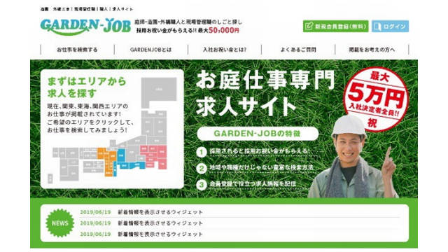 ガーデンメーカー(愛知県稲沢市)は、造園・外構・土木業界に特化した職人のための求人サイト「GARDEN―JOB」を開設する。10月3日にプレオープンした。