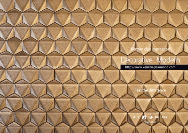 虔山(岐阜県土岐市)は装飾タイルカタログ「Decorative Modern」を発刊した。 やきものの新しい可能性を追求し、光と陰を効果的に演出する装飾タイルを掲載した商品カタログ。銀イブシ、アンティークゴールドなどの新色や新製品、店舗やホテルなどの新事例を多数収録した。 A4版、106ページ。 デジタルカタログをホームページで公開している。