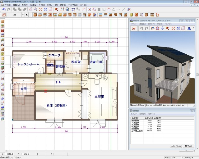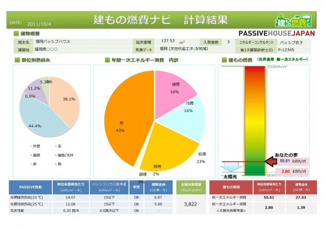 簡単に建築物の「燃費」(一次エネルギー)を計算し、「見える化」する(Q値・μ値なども計算可能)。