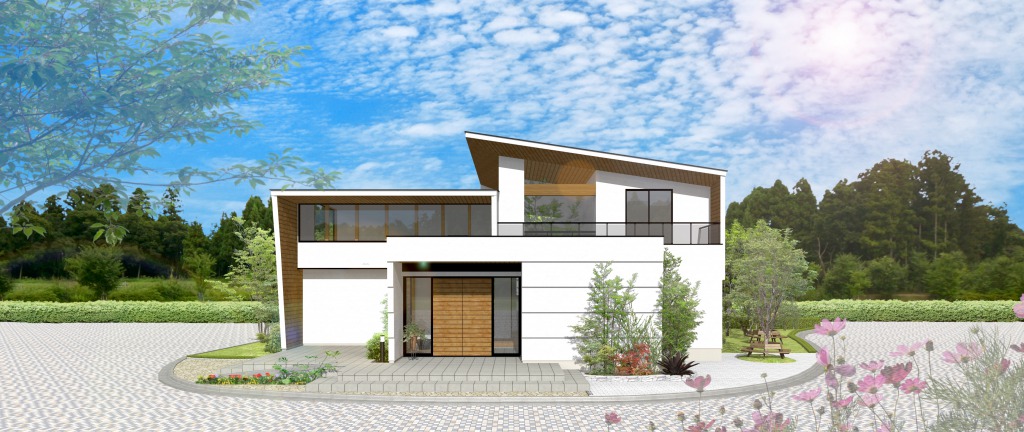 同店は、光を取り入れるための「光庭」を中心に部屋が配置されており、大開口により住空間と一体となり、光と風がよく通る開放感のある住まい空間を実現している。「光庭」の一部をタイルデッキとし、2階部分の軒下にもダイニング空間を設けた。半屋外の軒下空間は、夏場でも強い日差しを遮る。