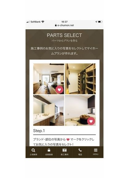 「e注文住宅net」は、施工事例写真をデータベース化した写真集のようなサイト。ユーザーは、「お気に入り」の画像を直観的に選ぶことができ、それをもとに理想のマイホームプランを同社に提示できる仕組みとなっている。同時に、同社からは土地情報や概算金額などの提案を行う。