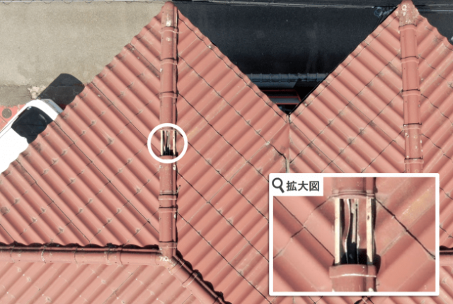 ドローンにより撮影された千葉県千葉市の戸建て住宅の屋根