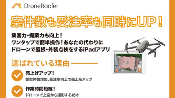 同社は、全国200社以上の屋根工事専門業者とのネットワークを有する「やねいろは(運営元:白神商事)」と共同で、アプリ「Terra Roofer」を活用し、ドローンをスタッフ自身で飛ばして屋根を撮影した。この写真により屋根の現状把握ができるため、現地調査をする必要がなく、そのまま修理段階へと進むことができる。なお、「やねいろは」では、災害発生時から災害地域専用窓口を設け、屋根破損の相談を引き続き受け付けている。