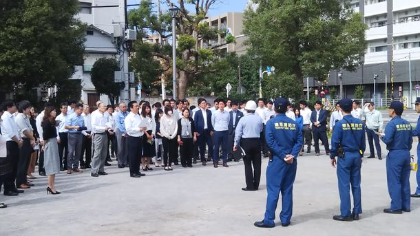 リビングライフグループは10月10日、矢口消防署(東京都大田区)の協力のもと、リビングライフ(東京都世田谷区)・東横建設(東京都大田区)・リビング建設(東京都大田区)の3社合同による避難訓練を大田区西蒲田エリアで実施した。