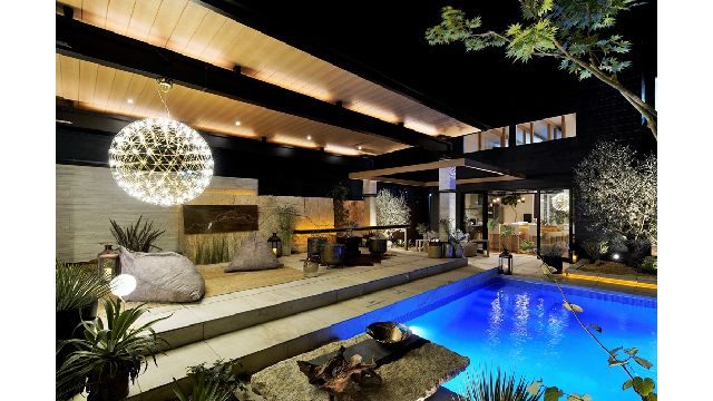 大賞受賞作品は、数年前に施工したアウトドアリビングを時代とクライアントニーズに合わせて活用し、家庭用プール「Magiline」を設置したデザイン。ラグジュアリー感漂うテラススペースを新設し、フォーカルポイントである装飾壁を引き立たせるよう「エクスティアラルーフ」を採用した。