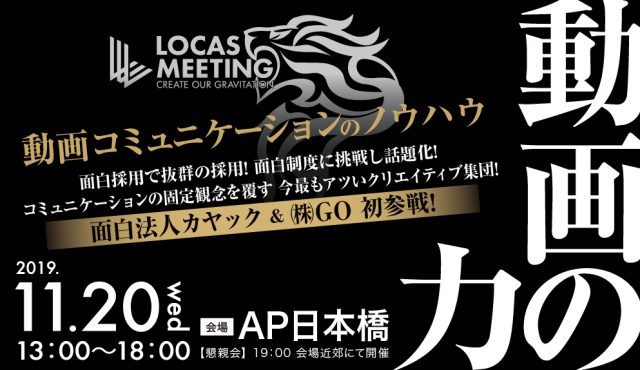 LOCAS(ロカス:東京都港区)は、第6回LOCAS MEETING「住宅業界実務者による四半期に一度のアカデミー」を、11月20日にAP日本橋で開催する。
