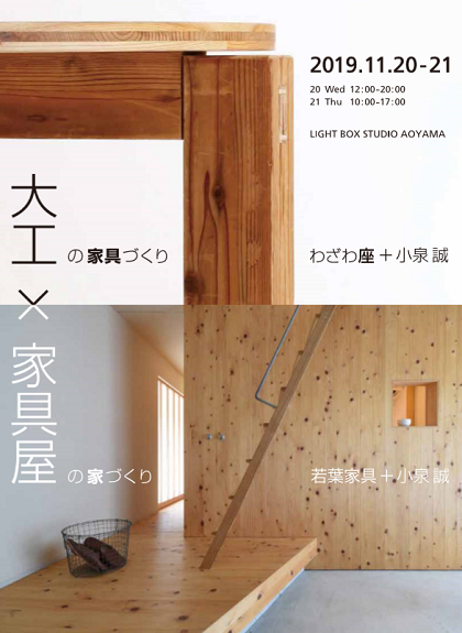 若葉家具(広島県府中市)は、「大工の手」プロジェクトを展開する一般社団法人わざわ座(事務局:相羽建設内、東京都東村山市)と共催で「大工の家具づくり×家具屋の家づくり」展覧会を、11月20日、21日に東京都港区「ライトボックススタジオ青山」にて開催する。