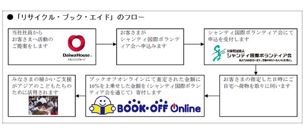 大和ハウス工業(大阪府大阪市)は、ブックオフオンライン(神奈川県相模原市)と公益社団法人シャンティ国際ボランティア会(東京都新宿区)が連携して行っている事業リンク型社会貢献活動「リサイクル・ブック・エイド」に10月15日から参画する。