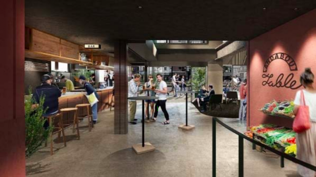 「ランダバウト」は、「ホテル」という枠に留まらず、国内外を問わず多様な人々が東京の拠点として利用する、身近で新しい出会いに満ちた場として開設する。1階にはカフェ・ダイニングバー「LANDABOUT Table」を設け、宿泊客・観光客だけの場所となりがちなホテルのグランドレベルの空間を、パブリックなものとして地域に開く。客席部分にはステージや音響設備も備え、さまざまなイベントを企画することで魅力を発信する。