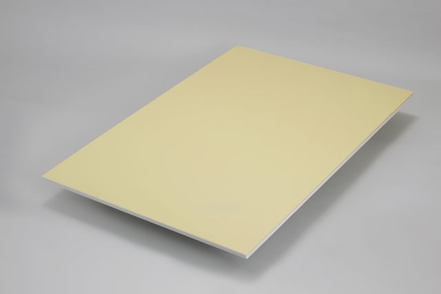 熱伝導率0.018W/(m・K)の高性能硬質ウレタンフォーム断熱材「ジーワンボード」(厚20mm)と石膏ボード(厚9.5mm)を1枚のパネルに仕立てた既存住宅向けの断熱複合パネル。