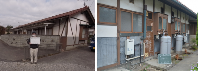 フルリノベーションした賃貸長屋(上)。リノベ前の長屋(下)