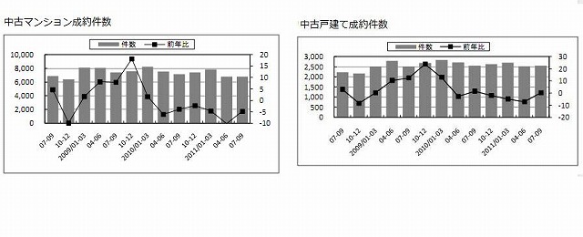 (財)東日本不動産流通機構(東京都千代田区、通称:東日本レインズ)は、2011年7~9月の首都圏における不動産流通市場の動向を発表した。