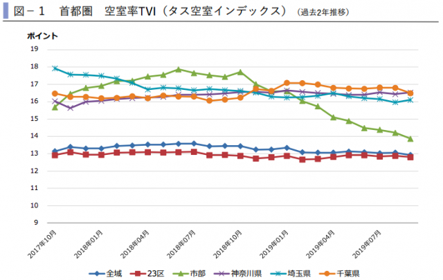不動産評価Webサイト「TAS-MAP」を運営するタス(東京都中央区)は11月29日、「2020年首都圏賃貸住宅市場の見通し」や「2019年9月期の1都3県賃貸住宅指標」を掲載した2019年11月の「賃貸住宅市場レポート 首都圏版・関西圏・中京圏・福岡県版」を発表した。