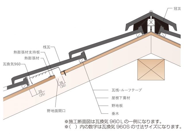 瓦と野地板の間の空間を利用する換気部材「瓦換気960」に、換気量・防水性能はそのままに、準防火地域などで使える防火仕様をラインアップ。