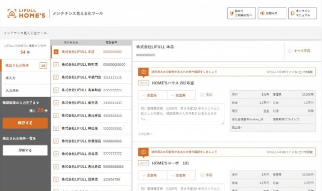 LIFULL HOME’Sメンテナンス見える化ツール画面イメージ