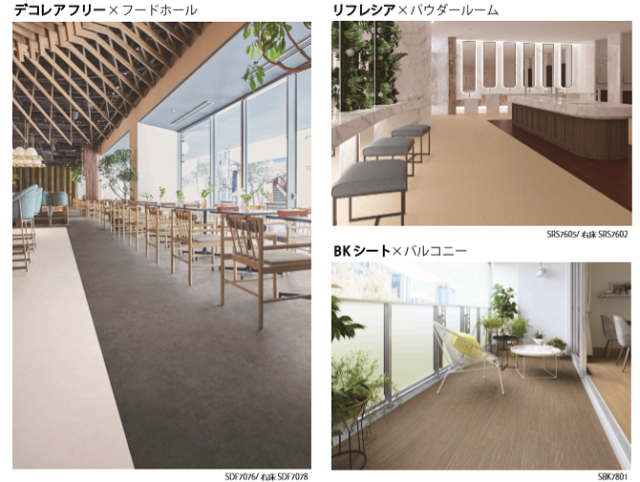 コントラクト向けの長尺シート床材・クッションフロア見本帳で、収録点数は261点。2.0mmの衝撃吸収「セラピア フィット」や乾式トイレ用床シート「リフレシア」などの新機能商品や、装飾性に特化したデザインシート「デコレア」など意匠性にこだわった商品をラインアップ。シーンに応じた提案を充実させている。
