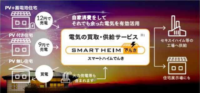 積水化学工業(大阪市)住宅カンパニーは、積水化学グループの住宅生産工場を配置する北海道セキスイハイム工業(岩見沢市)とセキスイハイム工業(埼玉県蓮田市)中部事業所に向け、電力売買サービス「スマートハイムでんき」で買い取った「卒FIT電力」の供給を3月から開始する。これにより、再生可能エネルギーでセキスイハイムの生産が可能となる見込み。