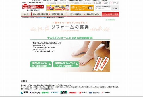 ホームクリップ(東京都中央区)は、同社のホームページで毎月更新している「後悔しない家づくりのために リフォームの真実」のサイトに「リフォームでできる快適床暖房」の掲載を開始した。