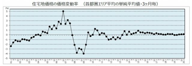 野村不動産アーバンネット(東京都新宿区)は1月14日、2020年1月1日時点の首都圏「住宅地価格」の動向調査結果を発表した。2019年10〜12月期の住宅地価格変動率は、首都圏エリア平均で0.1%(前回0.1%)となり、3四半期連続のプラスとなった。