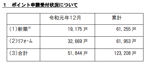 国土交通省は1月17日、消費税率10%への引き上げ後の住宅購入等を支援する「次世代住宅ポイント制度」の昨年12月末実施状況を公表した。