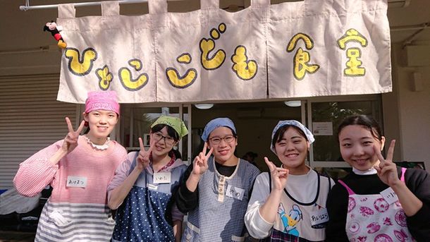 商店街で開催されている「ひよここども食堂」で活躍中の学生たち