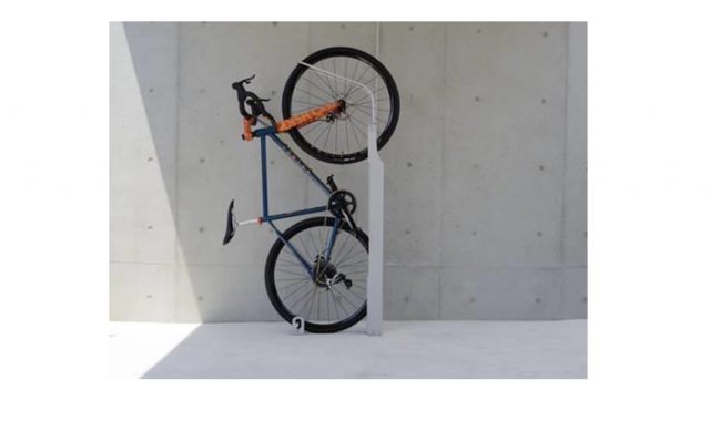 「LUSSO-urban」は、スポーツバイク専用の縦置き型サイクルスタンド。前輪をホールドする設計のため風で揺れる心配がなく、平置き型よりもスペースを40%節約できるとする。高1600x幅100(プレート幅150)x奥行520mm。スチール粉体塗装4色(レッド、イエロー、ブルー、グレー)とステンレス仕様をラインアップ。3万円〜。