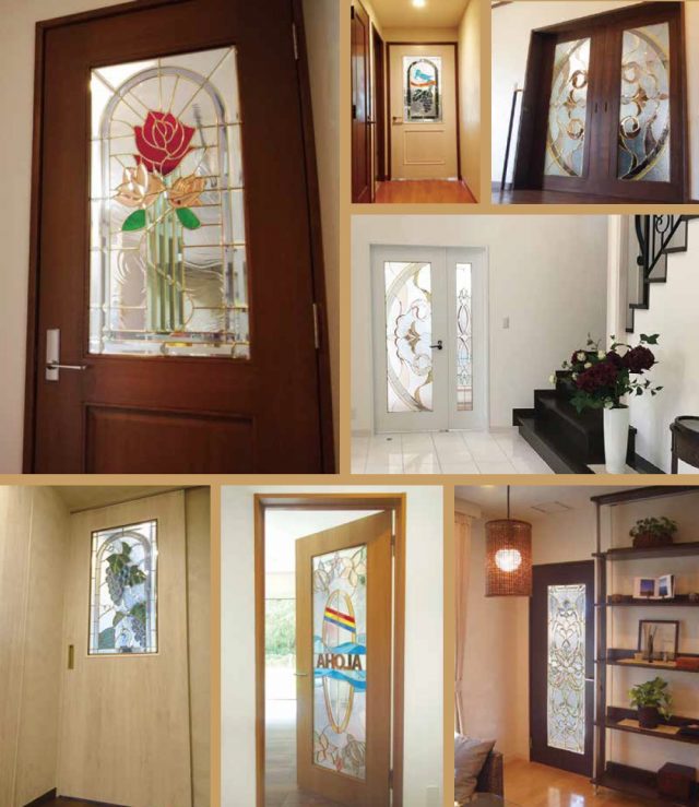 ドアサイズを測り、規格化された100種類以上のサイズ・デザインから好みのステンドグラスを選ぶと、それを組み込んだオリジナルのドアがつくれるというもの。