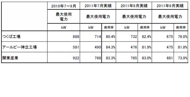 具体的にはつくば事業所と関東産業では太陽光発電システムを設置。また省エネ型の空調機器やLED照明の採用、社員の節電意識を高めるポスターの掲示、OA機器の省電力モードの設定、エアコンや照明の使用を控えるといった節電対策を実施したという。
