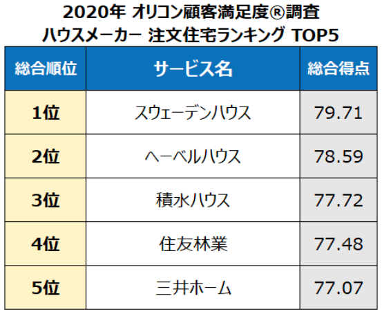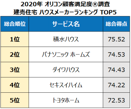 「オリコン顧客満足度」を展開するoricon ME(東京都港区)は2月3日、『ハウスメーカー 注文住宅』『建売住宅』『新築分譲マンション』の住宅系サービスについての顧客満足度調査の結果を発表した。
