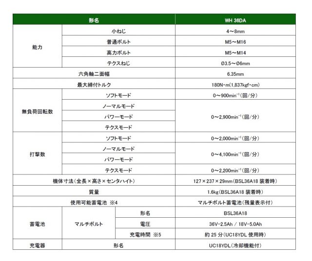18Vと36Vの互換性があり、AC100V電動工具と同等出力をもつ36Vリチウムイオン電池「マルチボルト蓄電池」を搭載することで、電池容量が減ってもスピードが落ちにくく、安定した作業が可能となる。