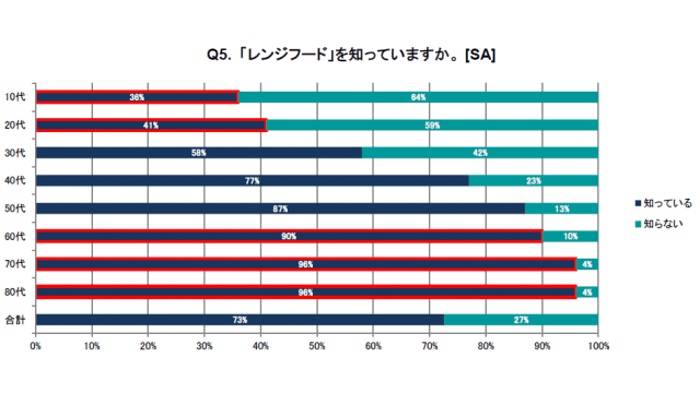「レンジフードと換気扇の違い(レンジフードはダクトを通して屋外に排出するのに対し、換気扇は吸い込んだ空気を直接屋外に排出)を知っているか」と尋ねたところ、どの年代でも「知らない」と回答した人が多く、全体では約70%がレンジフードと換気扇の違いを知らないことがわかった。