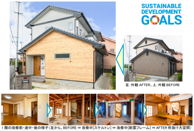 同物件は、空き家率の高い香川で地域内の高機能な住宅ストック増加を目指す「さぬき安心あんぜん住宅普及協議会」が「安心あんぜん住宅」として認定したもので、断熱・耐震性能が一般的な新築住宅の基準を上回る先導的なリノベーション事例。香川県丸亀市内の築18年の木造住宅に住む夫婦が、子育てを終えて新たな住環境を整えるため、「断熱」と「耐震」にこだわり、快適で暮らしやすく、メンテナンスのしやすい家へとリノベーションした。