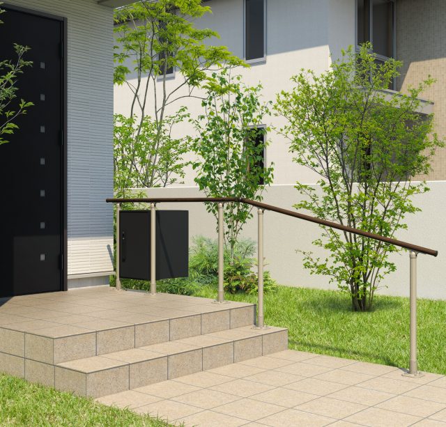 納まりは、敷地にあわせて「ポール建てタイプ」と「手すり連結タイプ」から選べる。