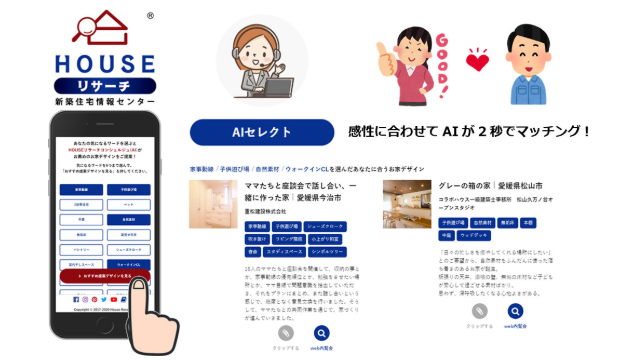 メディカグループ(愛媛県松山市)は2月17日、同社が運営する施主と住宅会社・設計事務所のマッチングサービス「HOUSEリサーチ」に、新たに「AIセレクト」機能を搭載したと発表した。