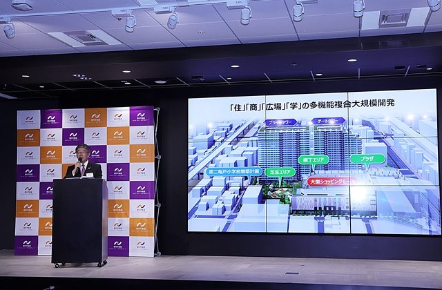 野村不動産(東京都新宿区)は2月19日、東京都江東区における「KAMEIDO PROJECT」と題した総戸数934戸のマンションと商業施設の複合開発を発表した。人気商業施設だった「サンストリート亀戸」跡地の開発で、地域との交流や防災に注力したまちづくりとする。