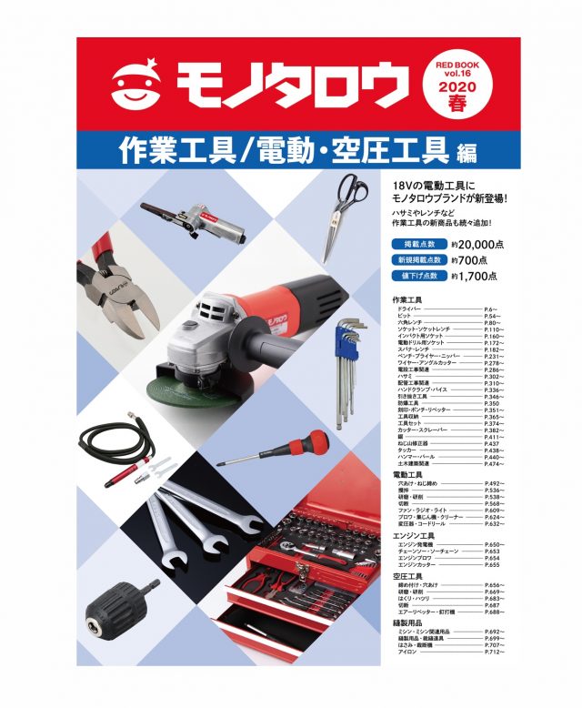 工業用間接資材通販のMonotaRO(モノタロウ、兵庫県尼崎市)は2月23日、年2回発行するユーザー向け商品カタログ『間接資材総合カタログ RED BOOK vol.16春号』を発刊する。19万4000点の間接資材を11冊分・約6200ページにわたって掲載している。