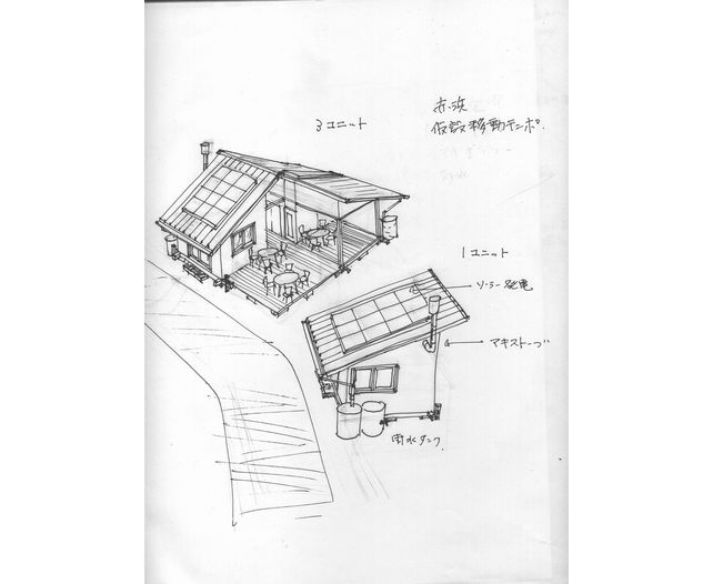赤浜小学校とその周辺の仮住まい住民のための施設。建物は木造平屋で、4坪の構造ユニット2つと1坪の水まわり(トイレ・洗面)ユニット1つで構成する。気軽に集まってお茶を飲んだり、日用品を購入したりできるようにするほか、コピー・FAX、インターネットなどのサービスも受けられるようにする考えだ。