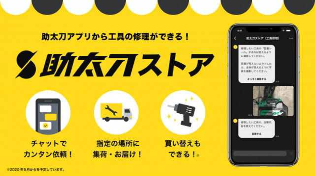 助太刀(東京都渋谷区)は2月25日、同社が提供する建設現場と職人のマッチングアプリ「助太刀」において、簡単に工具の修理依頼ができる「助太刀ストア」サービスを開始した。