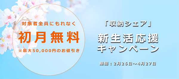 LIFULLの子会社であるLIFULL SPACE(東京都千代田区)は、春の引っ越しシーズンに合わせ、移動の際に発生する荷物の置き場所に関する困りごとをサポートするため、同社が運営する遊休スペースのシェアリングエコノミーサービス「収納シェア」が初月無料になるキャンペーンを2月26日より実施する。