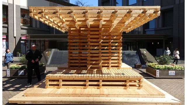 COOL TREEは、真夏の屋外公共空間に涼しさを提供するクールスポット装置。ミストやクールベンチなどのクールデバイスを搭載しており、デバイスの動力は全て太陽光発電によって賄われる。材料には、一般的に流通する75mm角のひのき間伐材を活用。土台はCLTで構成されている。各部材はボルトのみで接合しているため、組み立て・解体を繰り返すことが可能。木材はバイオマス発電の材料、鉄はスクラップを電炉材の材料にそれぞれ循環利用できる。