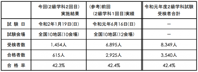 国土交通省は3月9日、2019年度の2級建設機械施工技術検定「学科試験(第2回)」(試験日=1月19日)の合格者を発表した。受検者1454人のうち、合格者は615人、合格率は42.3%だった。また、昨年6月に実施した第1回の「学科試験」と合わせた合格者は3540人、合格率は42.4%となった。