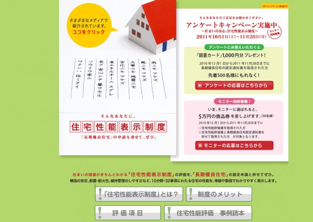 対象者は昨年2010年12月1日から今年2011年11月末までに長期優良住宅認定通知書を取得済みか取得見込みの施主。