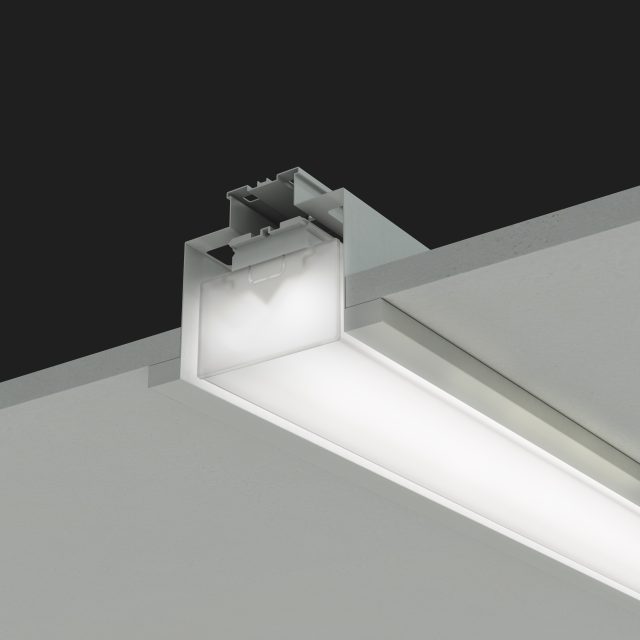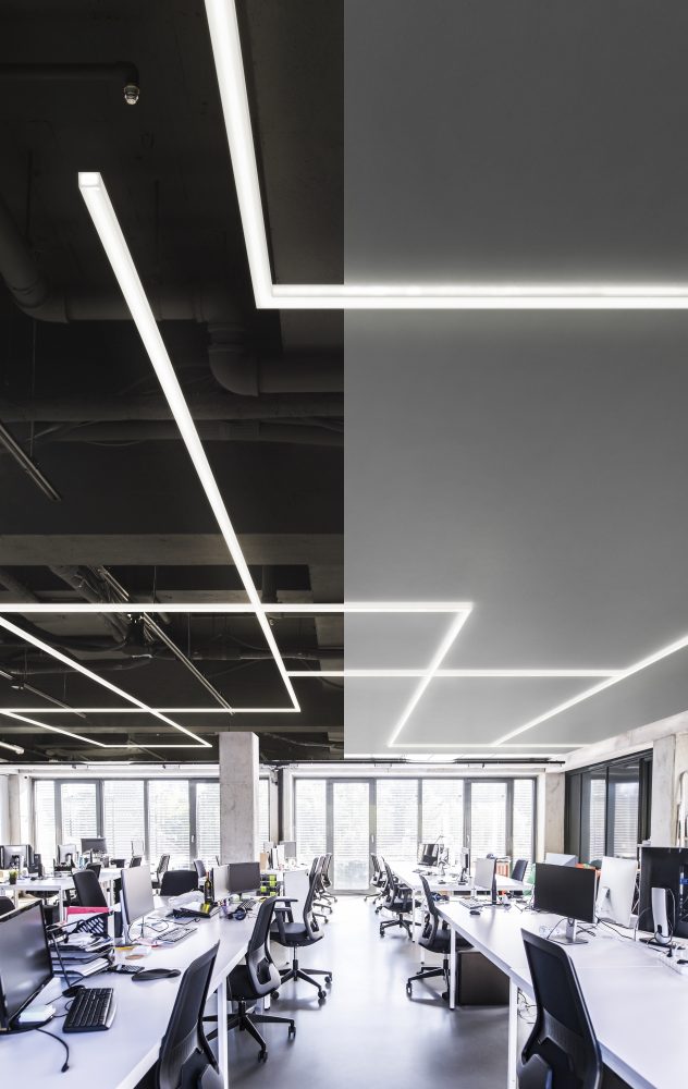 器具の大きさを極小化することで光のみを表現し、直線的デザインを実現。直線以外にも「十字」や「T字」などフレキシブルな施工が可能になるとする。
